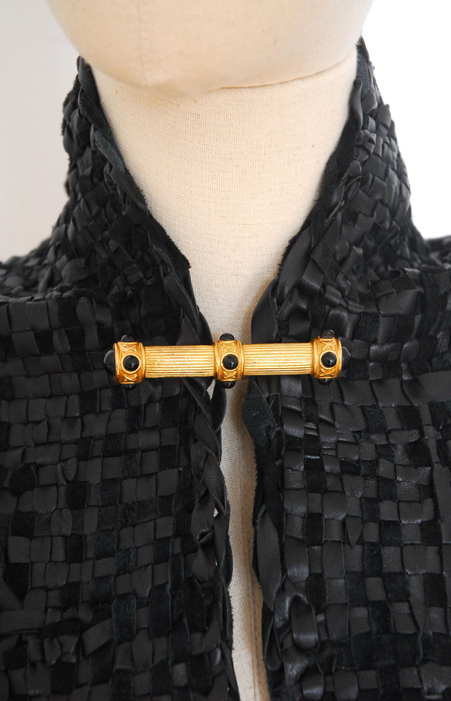 Fantastic heavy weight pin in a classical style, three dimensional and very well made with enamel black detail mimicking gemstones. I have held onto this for a while now because it just feel so great in your hand and can be worn on all manner of jackets, coats, scarves and anywhere you feel needs a gold lift.