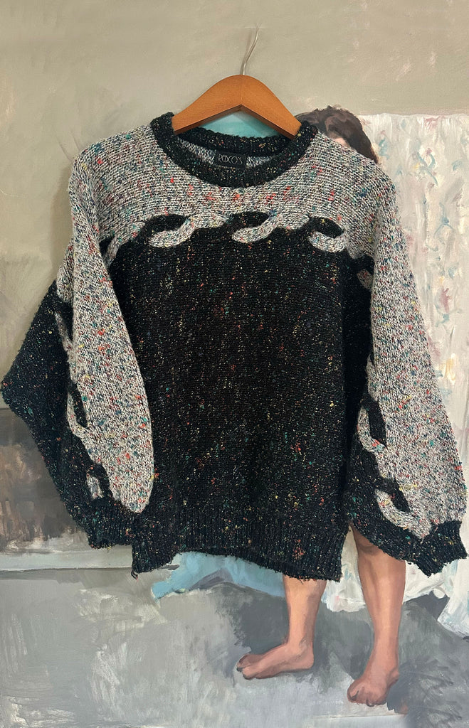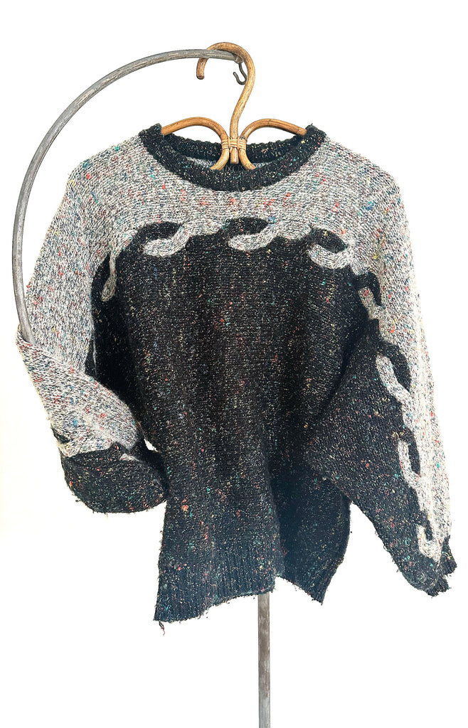 Excellent flecked wool sweater by Rebco's, love a two-tone sweater and this is a great cropped length with a batwing sleeve. One of those sweaters that are endlessly copied by modern designers! Appears to be a handknit.