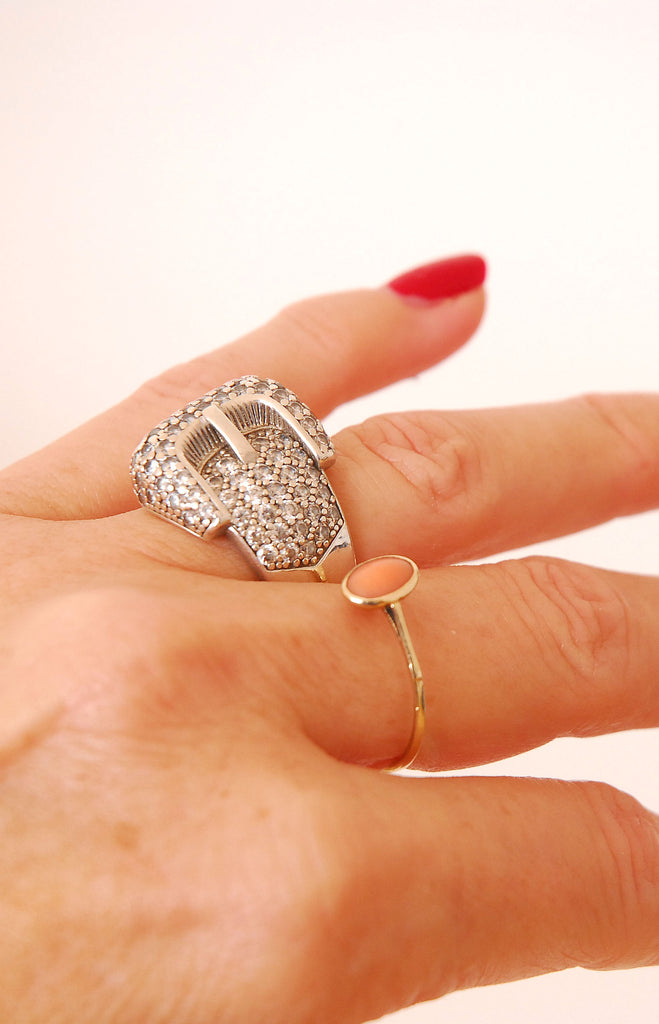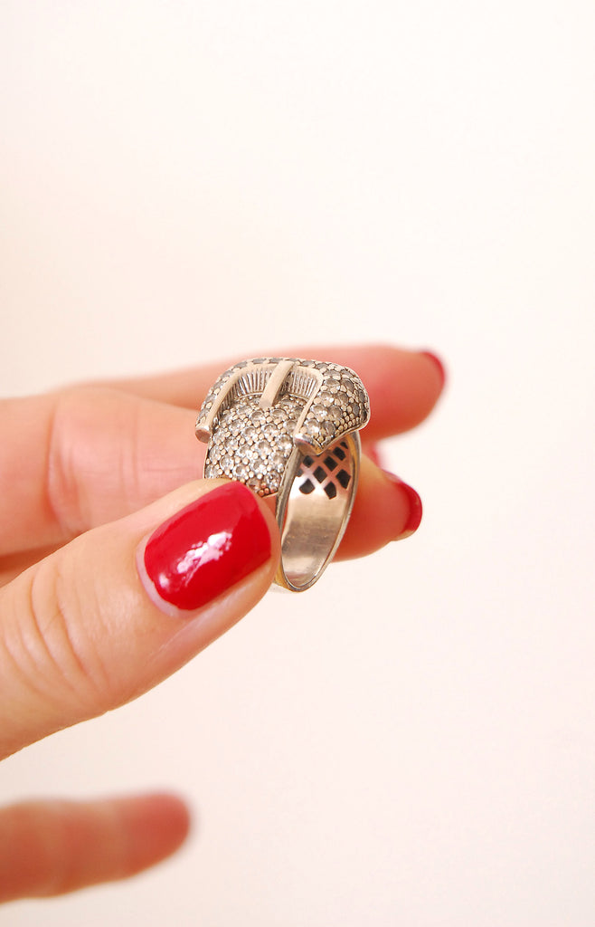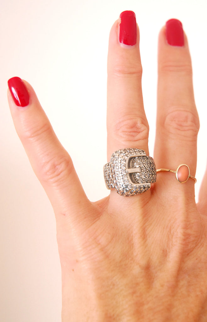 Absolutely love this chunky rounded buckle ring in a pavé style, gives the effect of a diamond ring! Estimating c.1980s in production. Great for stacking.